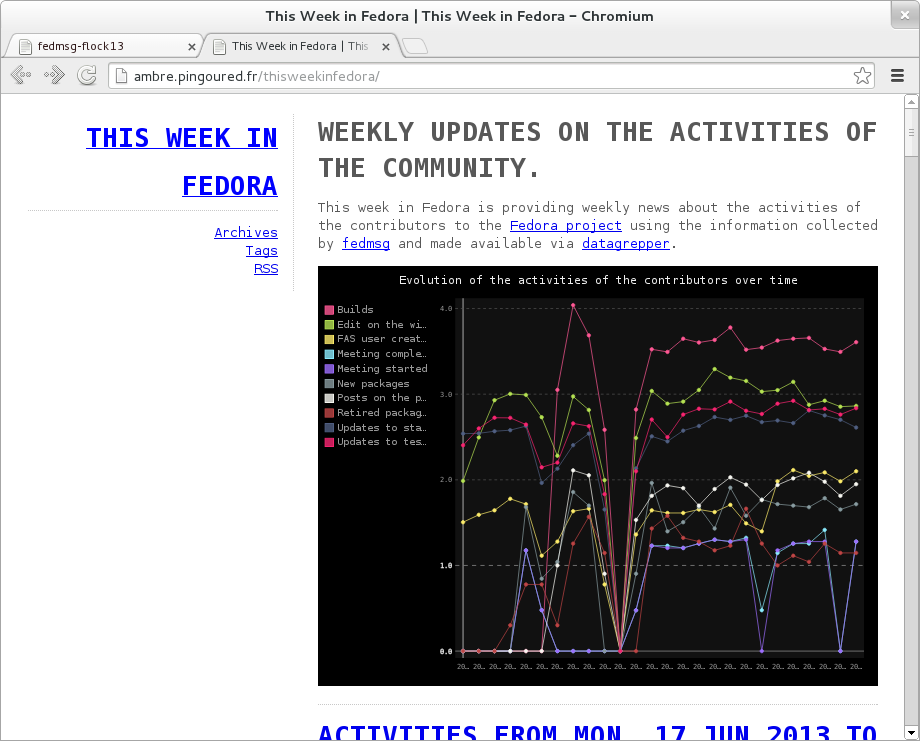 It has Fedora in the name, but Debian Infrastructure is picking it up this summer. They're making progress too. We now need to change the name to mean the FEDerated Message Bus instead.